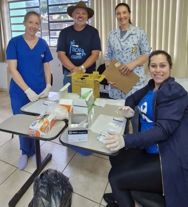 Na tarde desta quinta-feira (13 de novembro), a equipe de saúde de Cruzmaltina realizou uma importante ação voltada à conscientização e cuidado com a saúde do homem, em alusão à campanha Novembro Azul. O encontro aconteceu na Biblioteca Municipal e reuniu dezenas de participantes da comunidade masculina do município. O evento contou com um café da tarde especial, momento de integração e troca de experiências entre os homens presentes e os profissionais da saúde. Em seguida, foi realizada uma palestra com a equipe de saúde e a assistente social Maria de Fátima Vilas Boas, que abordaram temas como a importância da prevenção, o autocuidado e o diagnóstico precoce do câncer de próstata e de outras doenças que acometem a população masculina. Durante a ação, também foram disponibilizados testes rápidos para o público, reforçando o compromisso da Secretaria Municipal de Saúde com o cuidado integral e a promoção da saúde preventiva. O encontro contou com a presença do prefeito Maurício Bueno e do secretário municipal de Saúde, Marcelo, que destacaram a importância de iniciativas como esta para incentivar os homens a cuidarem mais de sua saúde e participarem ativamente das ações das unidades de saúde. A campanha Novembro Azul segue com o propósito de quebrar tabus e reforçar que cuidar da saúde também é coisa de homem. A Prefeitura de Cruzmaltina e a Secretaria Municipal de Saúde seguem comprometidas em promover ações que fortalecem o vínculo entre a população e os serviços de saúde, incentivando o diagnóstico precoce e a melhoria da qualidade de vida de todos. Para Mais informações: https://blogdoberimbau.com/